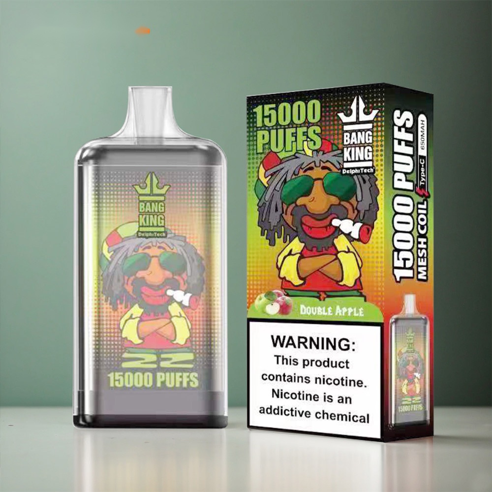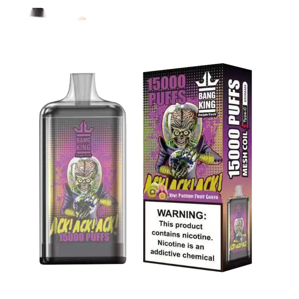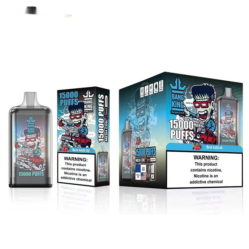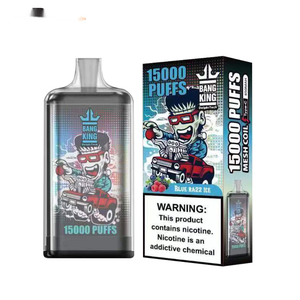 The Bang king 15000 Puff features a 25ml oil capacity, enabling up to 15000 puffs. It’s powered by a 650mAh battery and has a Type – C charging port. With nicotine salt options of 0%, 2%, 3%, and 5%, a 1.0ohm Mesh Coil, 20 available flavors, and a crystal material construction, it offers a comprehensive and satisfying vaping experience.