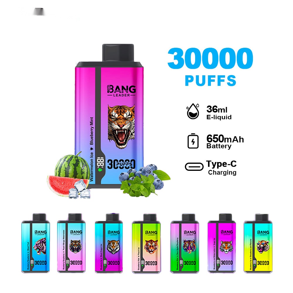 Bang Leader 30000 Puffs Disposable Vape: A premium device engineered for an exceptional vaping experience, featuring dual flavor options and a built-in LCD screen.
