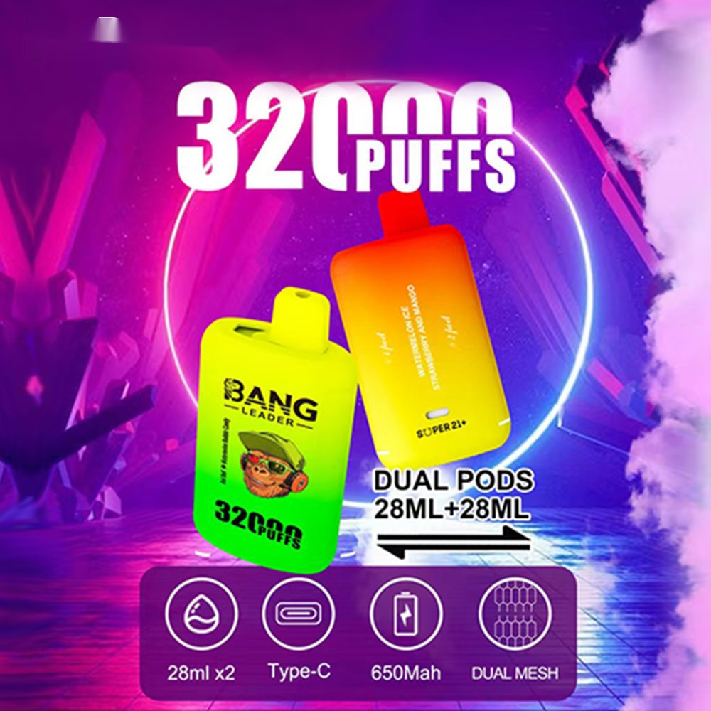 The Bang Leader 32000 sets a new standard for premium disposable vapes by delivering a long-lasting and richly satisfying experience with up to 32,000 puffs. This innovative device features a dual-chamber pod system, enabling users to enjoy two distinct flavors in one device—either separately or mixed. Pre-filled with 28ml + 28ml of high-quality e-liquid, it guarantees extended use without the need for frequent replacements.