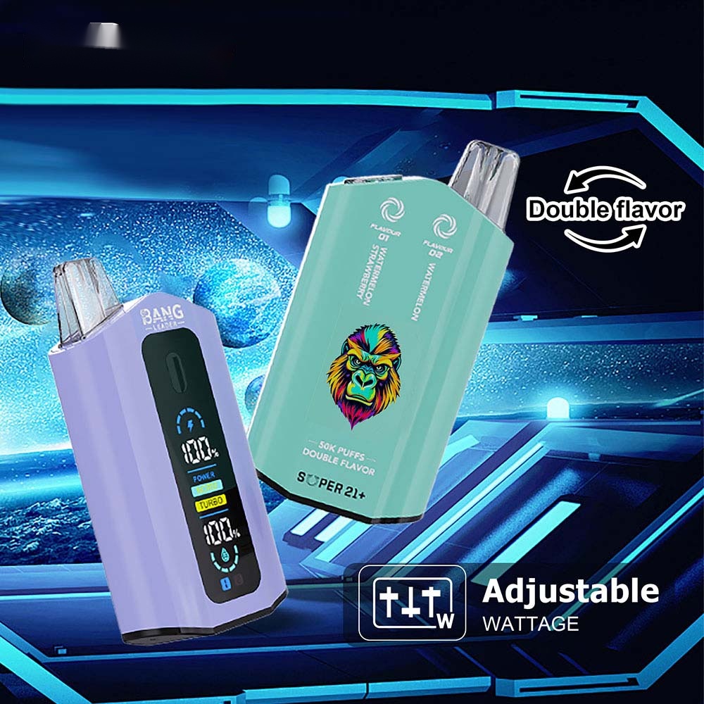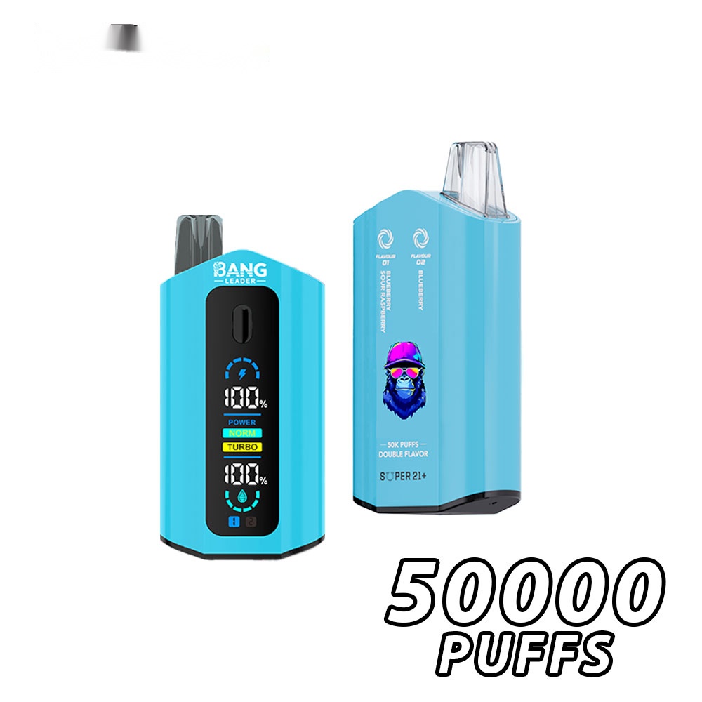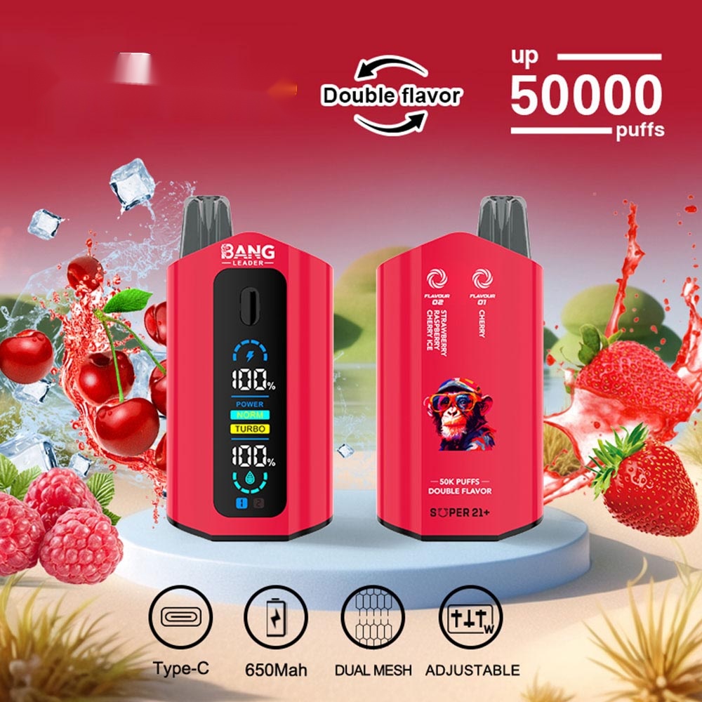 Experience the Bang Leader 50000 Puffs disposable vape, designed with Dual Flavor technology for intensified taste. It holds an ample 36ml of e-liquid and delivers up to 50,000 satisfying puffs. Powered by a rechargeable 650mAh battery, this device ensures consistent performance and extended use for a rich, flavorful vaping journey.