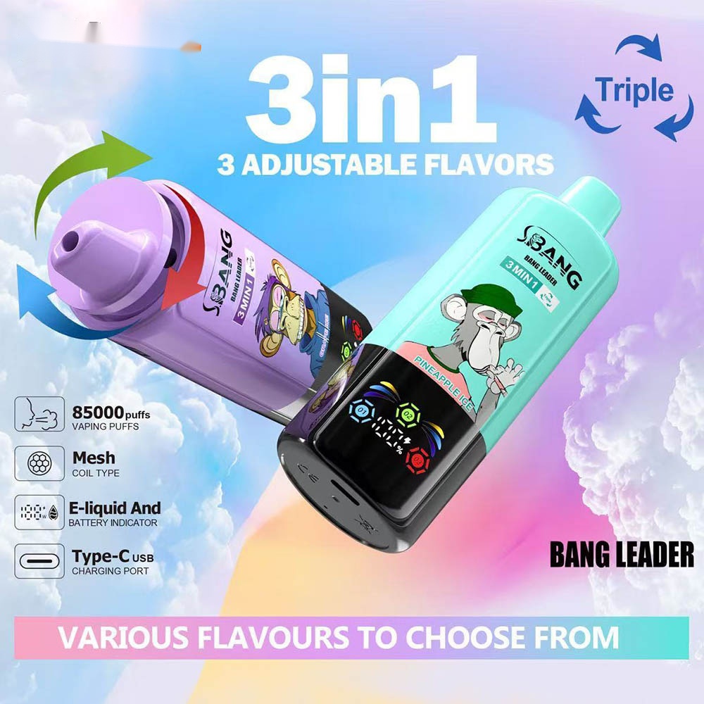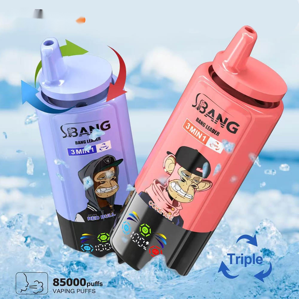 Explore the Bang Leader 85000 Puffs vape, featuring a triple-flavor system, smart display, reusable battery, and a huge capacity of 85,000 puffs. Enjoy a lasting and diverse vaping experience.