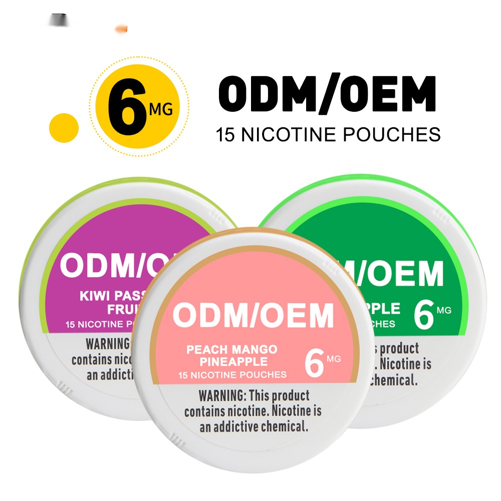 With a nicotine strength of 6mg per pouch, which can also be customized to suit individual needs. Each can contains 25 pouches in various pack sizes. The pouch texture is dry, and it features a slim size for a comfortable fit under the lip. The standout Flavour Profile is the enticing Double Apple, offering a delicious and refreshing taste. We provide support for ODM/OEM services.