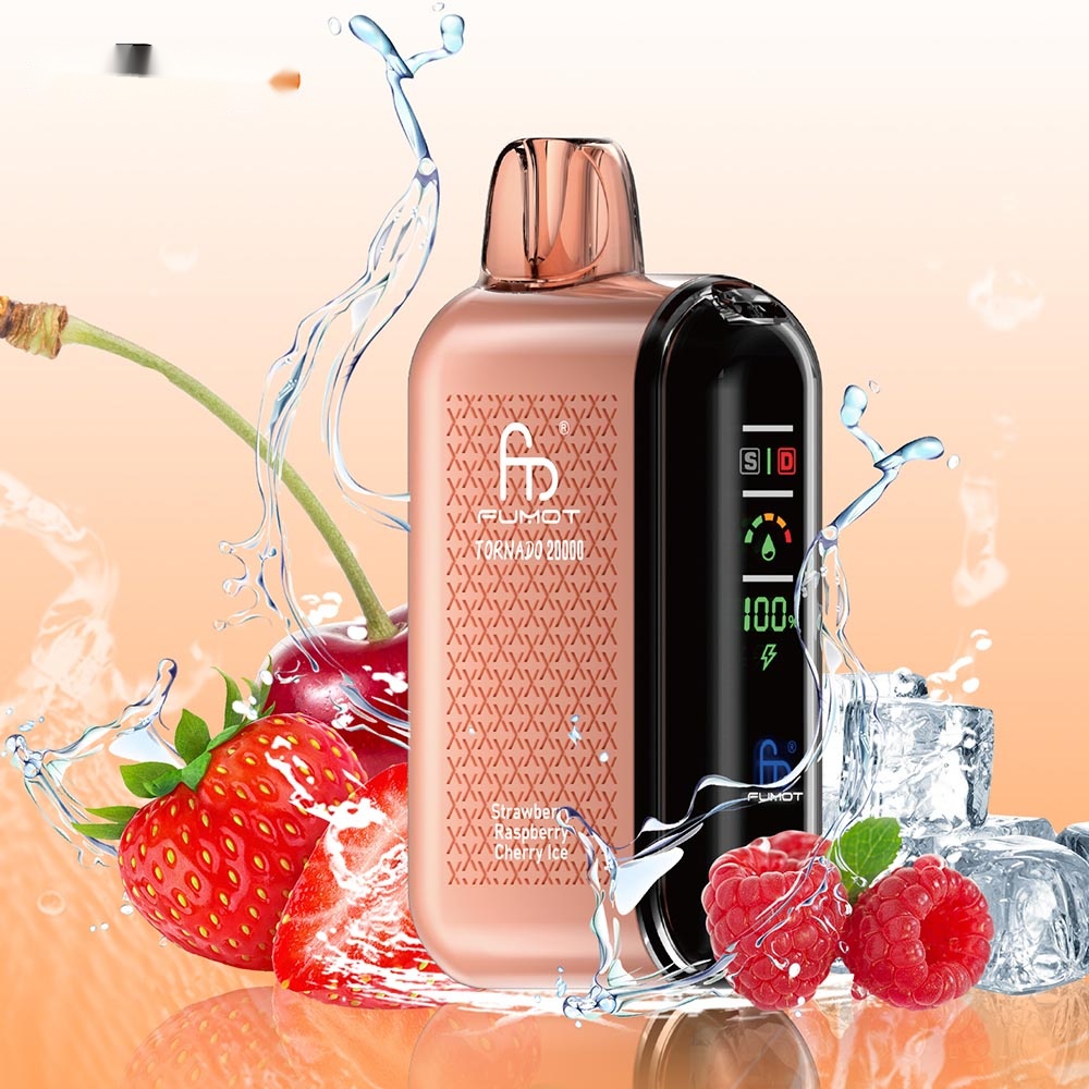 Fumot RandM Tornado 20000 Puffs Disposable Vape provides up to 20000 satisfying puffs. Featuring a refreshing strawberry, raspberry, and cherry ice blend, it delivers fruity sweetness with a cool finish. Ready to use straight out of the box—no charging or refilling needed. Portable and hassle-free.