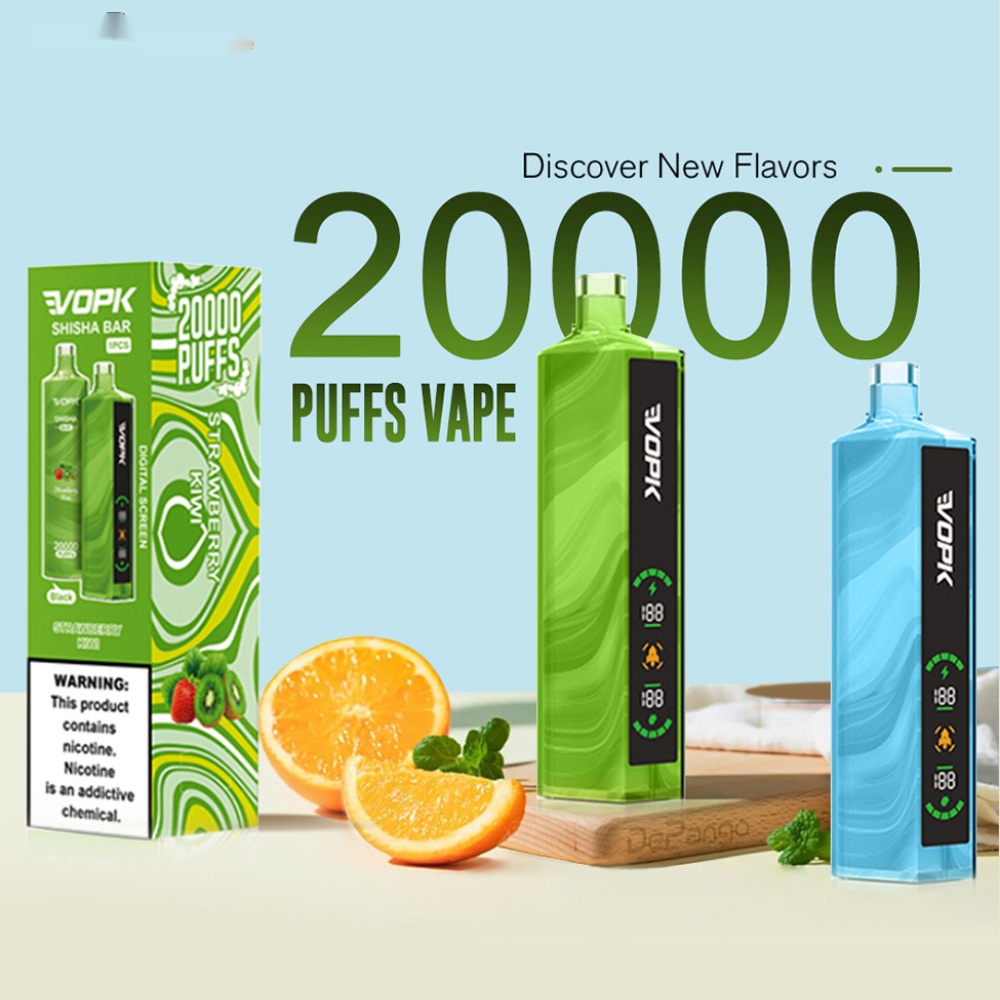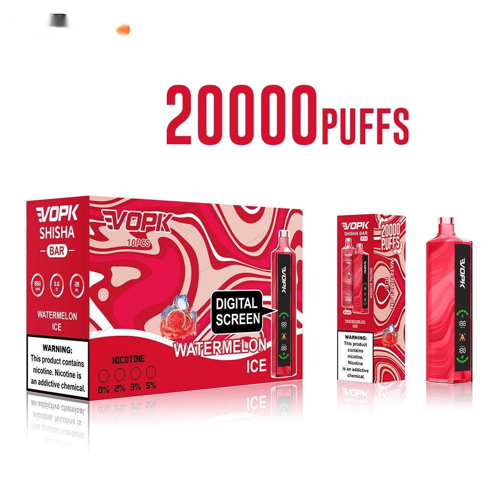 Experience smooth vaping with the VOPK Shisha Bar 20000 Puffs rechargeable disposable vape device.Featuring advanced mesh coil technology, adjustable nicotine levels, a generous 28ml e-liquid capacity, and delivering up to 20,000 puffs, this premium device caters perfectly to both individual vapers and wholesale customers seeking high-quality products.