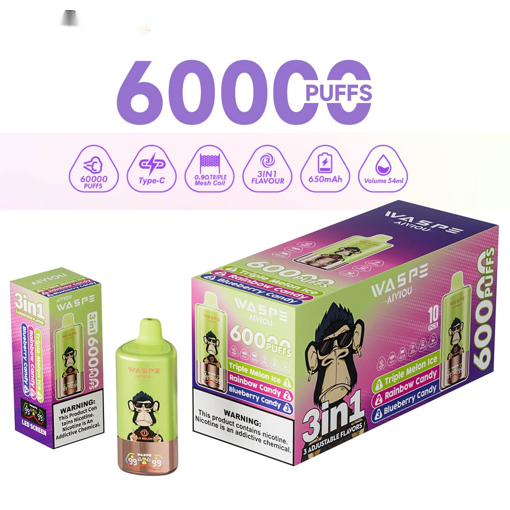 Introducing the Waspe 60K Vape – designed to elevate your vaping journey with an impressive 60,000 puff capacity, three customizable flavor modes, adjustable nicotine strengths ranging from 0% to 5%, a generous 54mL e-liquid reservoir, a smart digital display, and rapid charging technology. This device delivers a robust, flavorful experience tailored to your preferences, blending innovation with user-friendly functionality for seamless vaping satisfaction.
