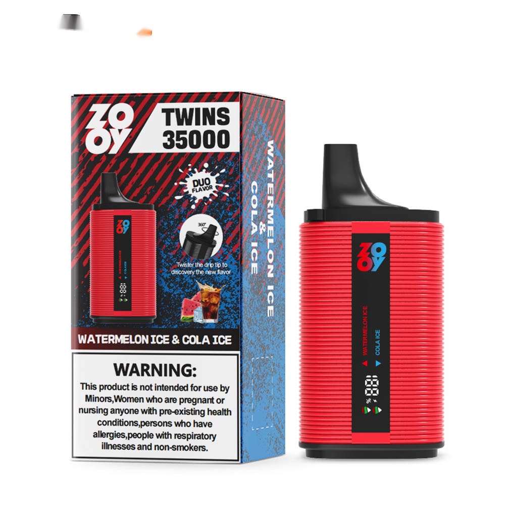 The ZOOY TWINS 35000 Puffs Disposable Vape delivers intense satisfaction with its dual-flavor system, smart display, dual mesh coil, and 650mAh rechargeable battery—engineered for a consistently powerful vaping experience.
